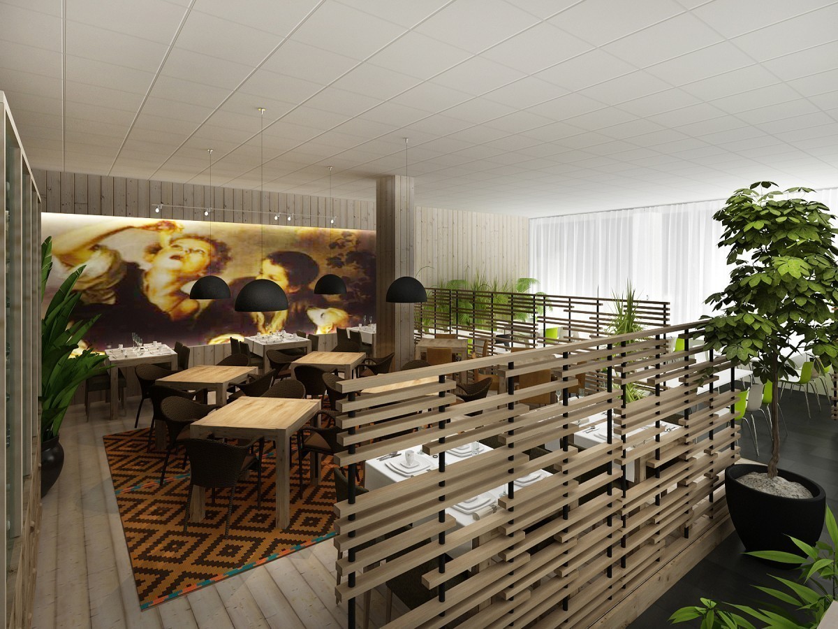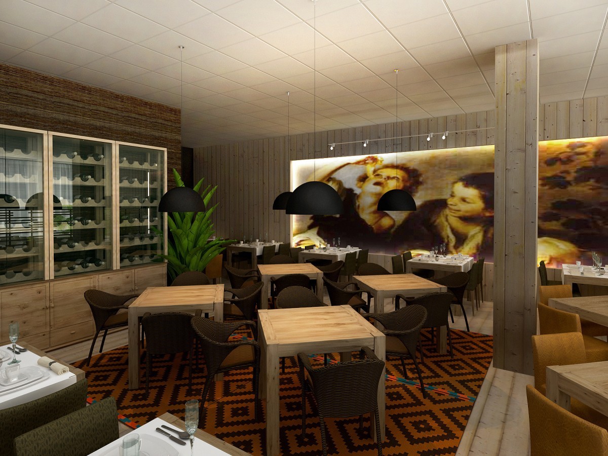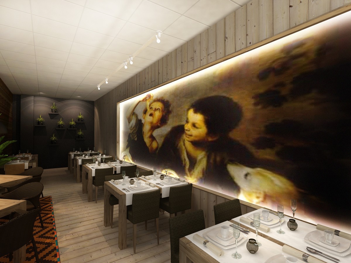 Redizajn pôvodnej kantíny v administratívnej budove. Časť priestoru vyčlenená ako reštaurácia s obsluhou. Tá je riešená v ´domáckejšom´ duchu, na drevenej palubovke, s dreveným nástenným obkladom a veľkoplošnou fototapetou svetoznámeho Murillovho obrazu so súvisiacou tematikou.