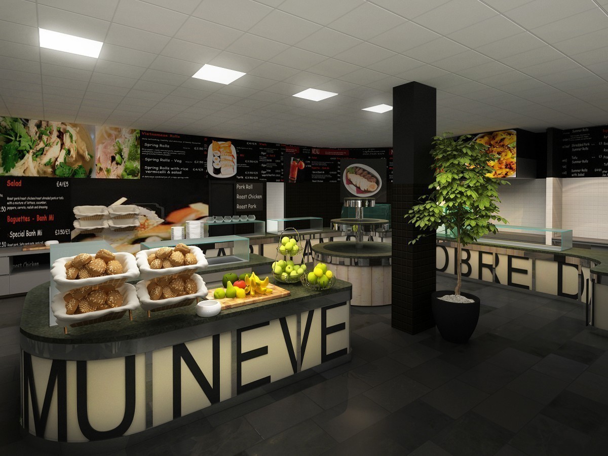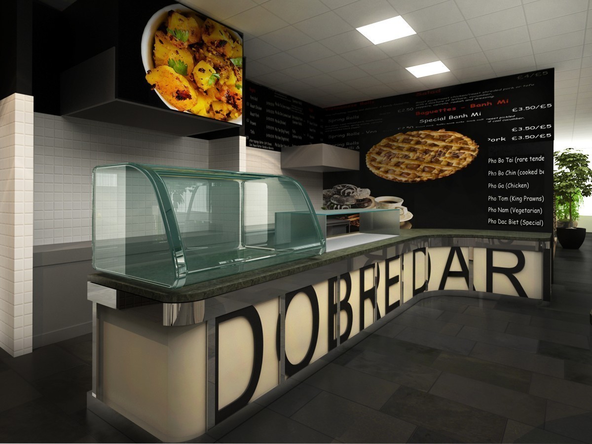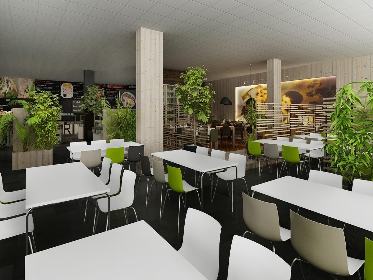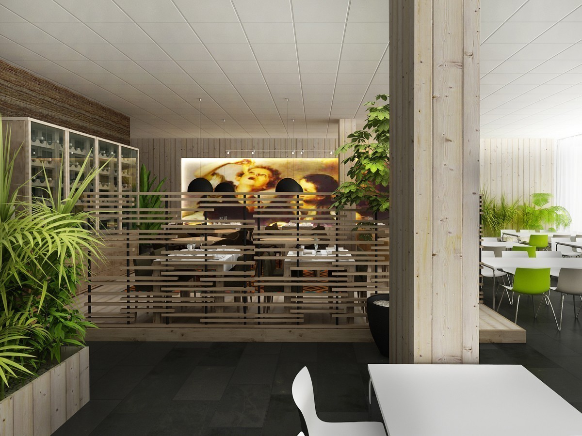 Redizajn pôvodnej kantíny v administratívnej budove. Časť priestoru vyčlenená ako reštaurácia s obsluhou. Tá je riešená v ´domáckejšom´ duchu, na drevenej palubovke, s dreveným nástenným obkladom a veľkoplošnou fototapetou svetoznámeho Murillovho obrazu so súvisiacou tematikou.